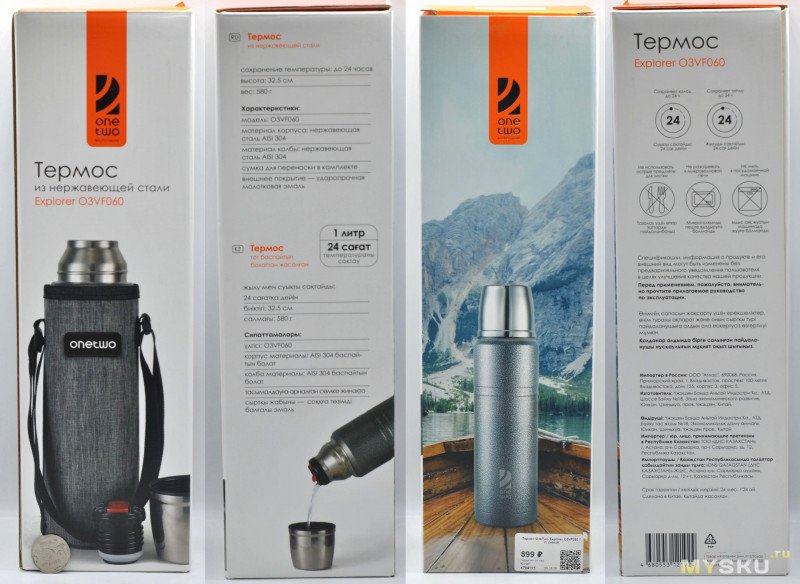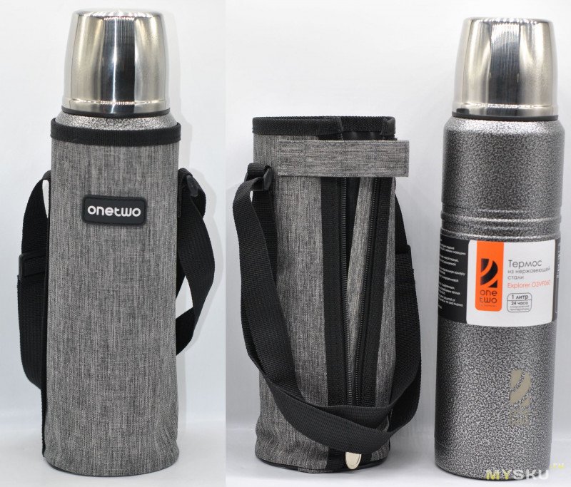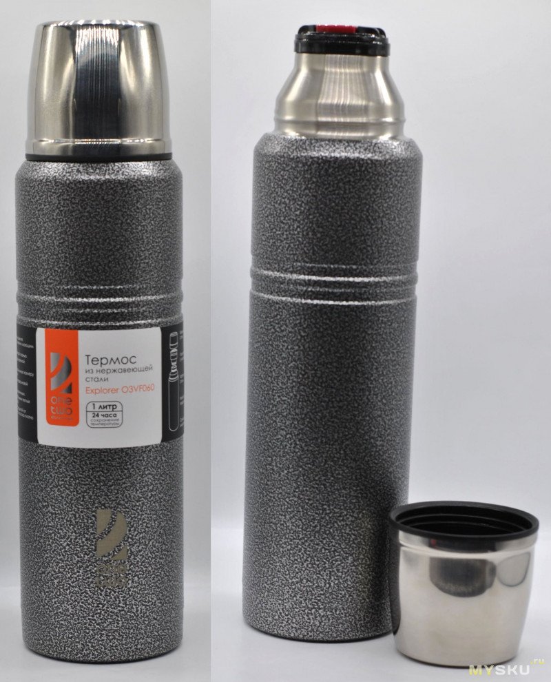 OneTwo Explorer O3VF060 неплохой бюджетный термос, не протекает пробка, держит температуру как заявлено. Буду использовать для зимних прогулок и велопоездок. Тут пытались снизить теплопотери диаметром горлышка и клапаном. Почитал отзывы на ДНС, если колба без брака претензий к нему нет. Главное беречь от ударов колбу. Мне не особо понравился только чехол, во-первых он только для переноски (ни от чего не защищает), во-вторых держится плохо.