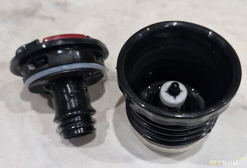 Когда мыл термос — обнаружил пробка то разборная (на резьбе). Это плюс — можно промыть внутри клапан.