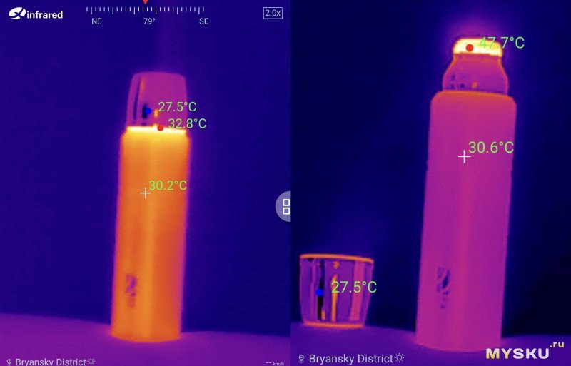 Производитель дает данные 59 градусов через сутки, у меня вышло 60. Если открывать пробку реже данные были бы чуть лучше. И для лучшего сохранения температуры перед использованием необходимо нагреть или остудить колбу термоса в течение нескольких минут. Часть теплопотерь закономерно идет через крышку: