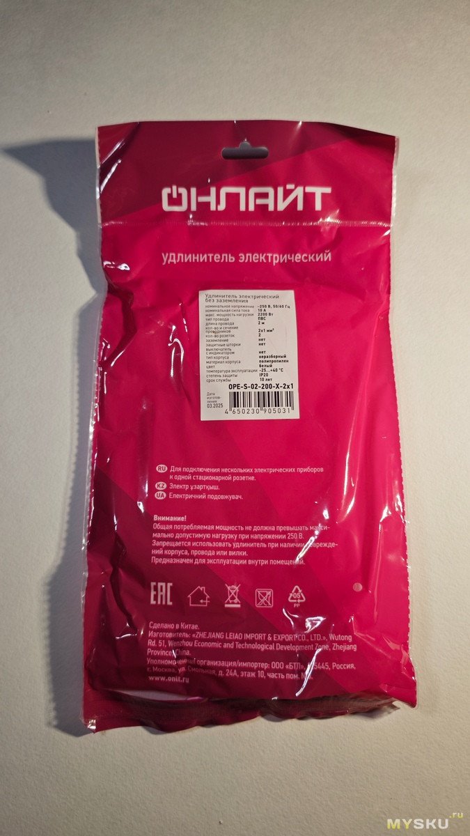 На корпусе блока розеток, проводе и вилке есть название бренда. Маркировка:
