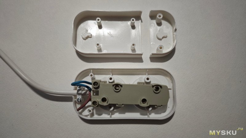 Блок розеток разборный, есть дополнительная крышка, позволяющая пользователю подключать и отключать провод на винтовом соединении. Используется шесть саморезов.