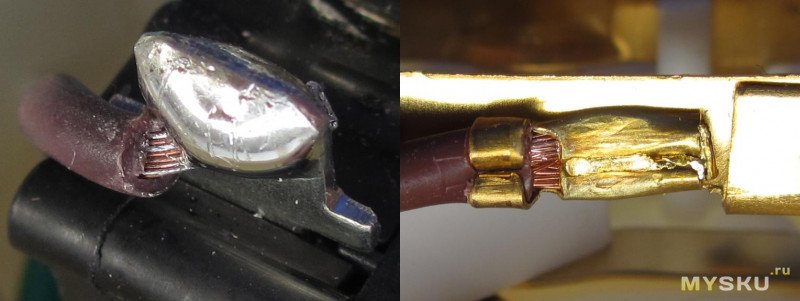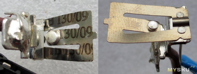 Термопредохранитель был полностью разобран с целью не расплавить его корпус при пайке контактов.
