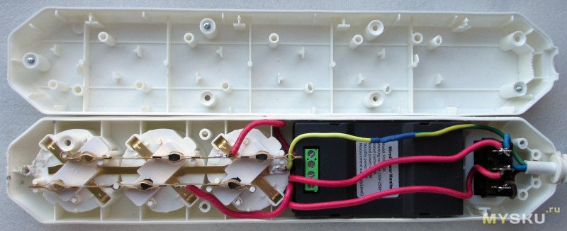 Основное достоинство — совместимость размеров с установленным ваттметром. Кабель сомнительный, хотя 10А худо-бедно выдерживает. Колодка — ничего страшного не отметил, только опять же кабель зажат плохо и крепления оказались сорваны. Еще и цену задрали.