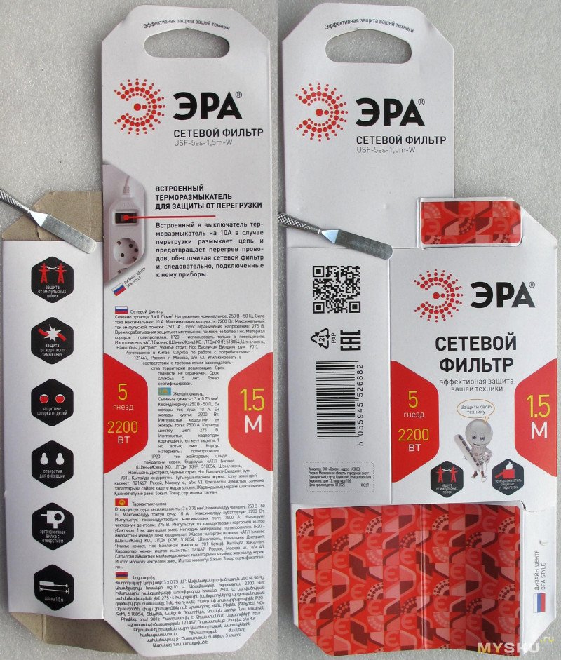 Добавляем ваттметр в "сетевой фильтр" ЭРА UFS-5es-1,5m-W (5 розеток с заземлением)