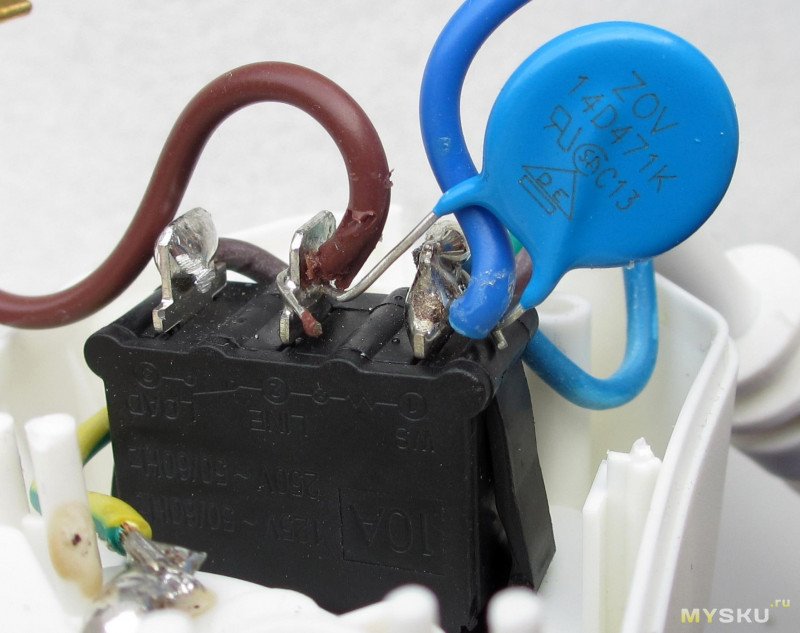 — защита от помех со временем срабатывания в 1нс — по факту стоит одинокий варистор 14D471K