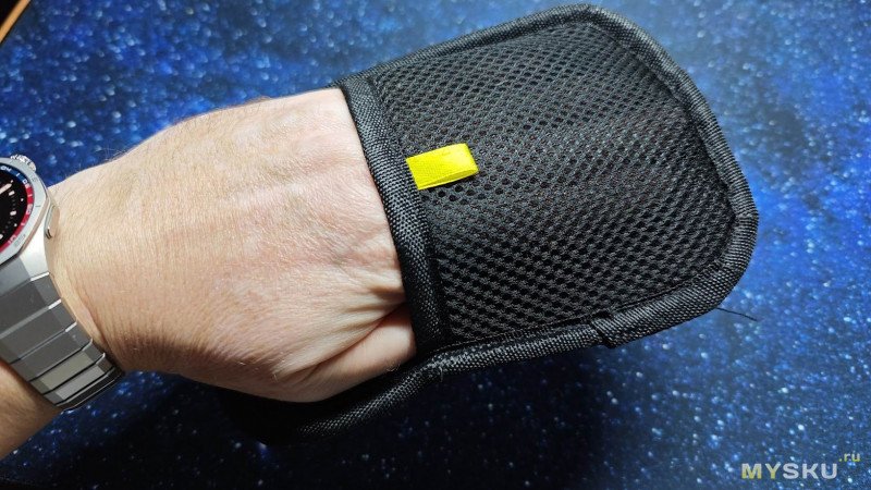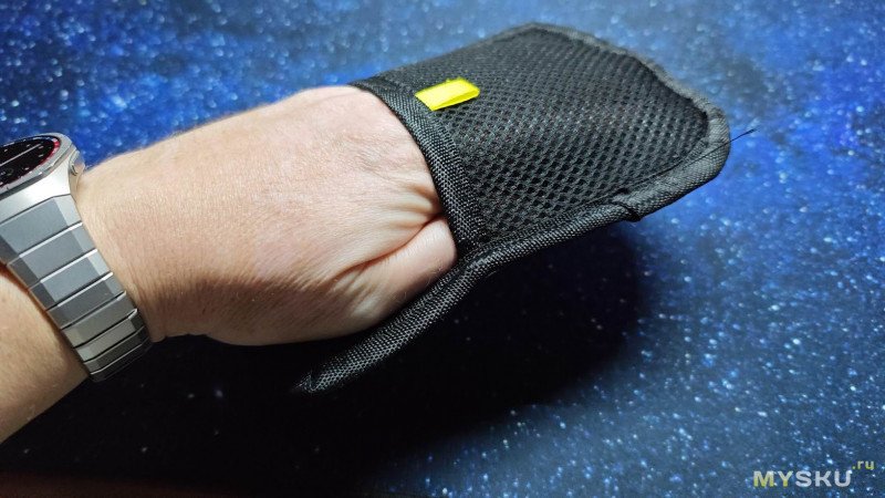 Перчатка тонкая, но мягкая. С обратной стороны во всю ширину есть кармашек из эластичной сетки под руку.