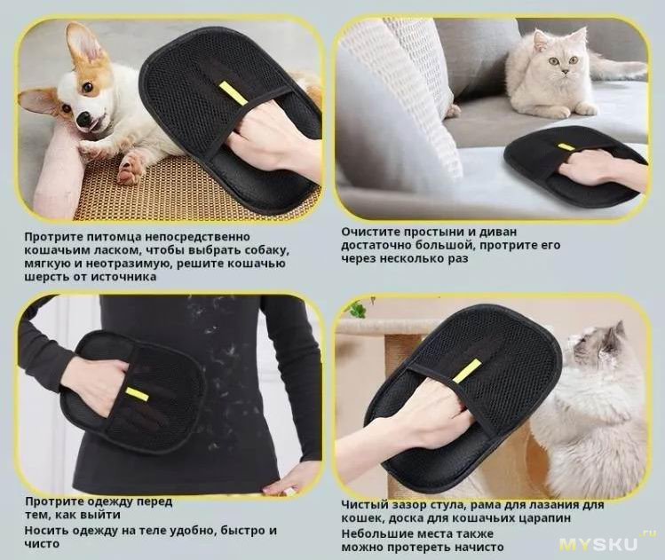 Производится целая куча вариаций этой рукавички от разных брендов, гуглить по «pet hair removal gloves».