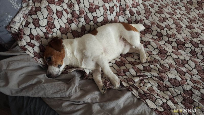 Теоретически, мысль здравая и работать эта технология должна, но насколько хорошо — проверить нужно обязательно. Наш шерстяной испытатель мирно дрыхнет на диване. Я не одобряю, но его главный хозяин — супруга (она его кормит и гуляет с ним по утрам), разрешает ему такие вольности.