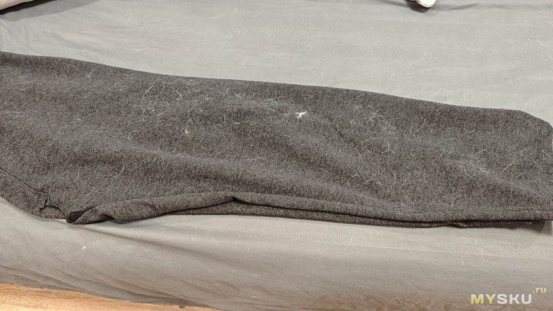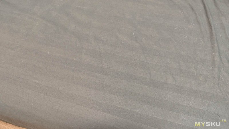 Я приложил существенно больше усилий, но добиться такого стопроцентного и главное быстрого результата в очистке, как на видео, я не смог. На простыне всё равно осталось еще довольно много шерстинок.