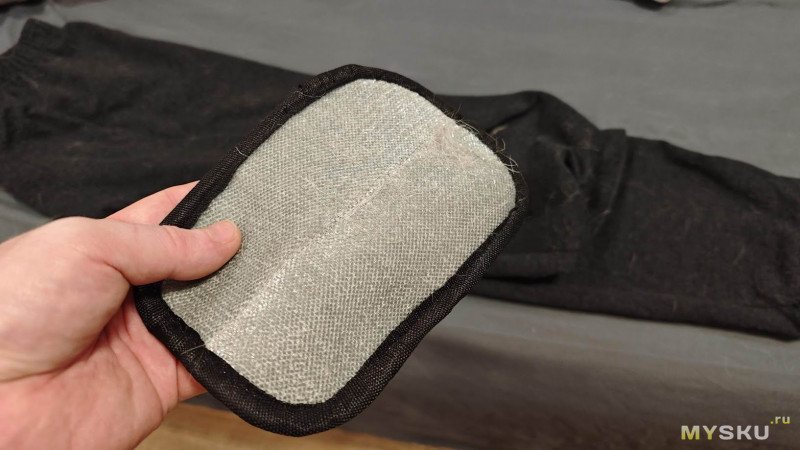 Ну во-первых, опыт не удался сразу, штаны начали собираться в складки, мешая очистке, во-вторых, как я и предполагал, точнее даже хуже, чем я предполагал, перчатка из вон рук плохо справилась с этой задачей. Шерсти она собрала гораздо меньше, чем с простыни. Причём косичка вообще не сформировалась.