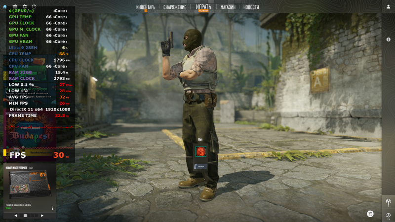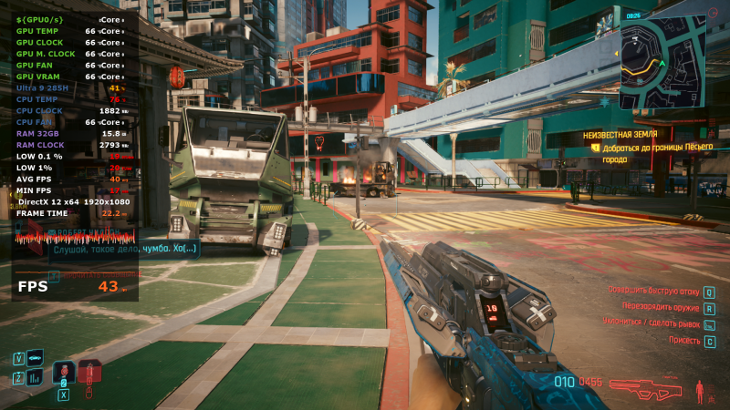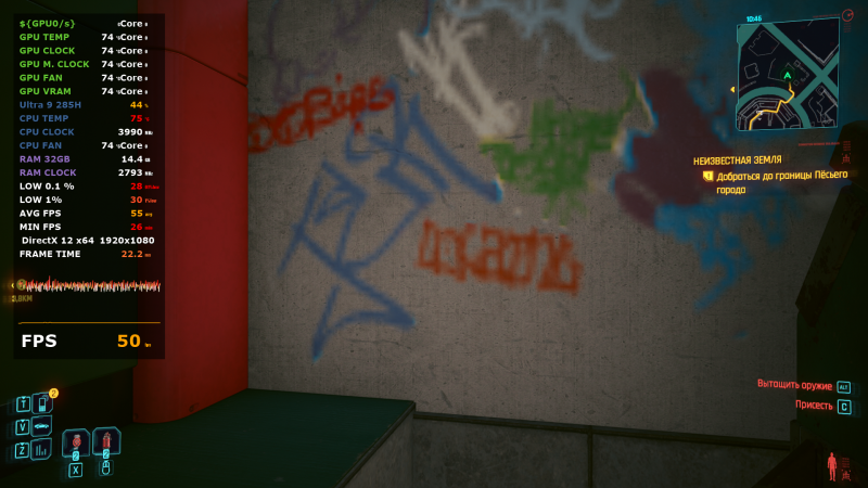 Двухсотая мобильная серия по сути своей эволюционно отличается от сотой, т.е. нет огромного скачка в результатах, но он есть везде и такой, что нельзя списать на погрешность. В любом случае, встройка очень неплоха и позволяет играть в тяжелые проекты, конечно же, на минималках, почти всегда с использованием FSR/XeSS. Тем не менее, для встроенного видеоадаптера неплохие результаты, как минимум CS2 и Dota 2 идут гладко, позволяя повысить графику выше среднего. Киберпанк, несмотря на почтенный возраст, все еще тяжелый, но и он уже доступен на ряде встроек, естесственно без лучей, в этой игре меня немного смутил график времени кадра, но к нему я еще вернусь. Сталкер 2 на минималках с XeSS на производительности играется вяло, но почти 30 фпс получить можно.