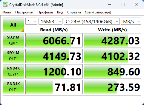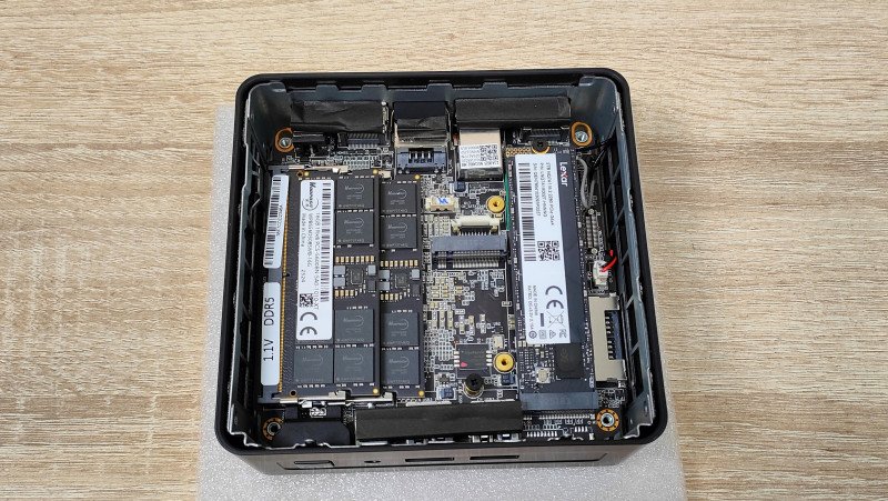 Накопитель, естественно PCIe 4, с четырьмя линиями, как и положено современному устройству. Думаю, PCIe 5 не будет еще в миниках в больших количествах еще пару лет, да и толку он них, только лишний нагрев. Но, независимо от того, PCIe 3 или 4, обычно ставят бюджетные устройства, и в этом, лично я не вижу ничего криминального, т.к. большинству хватит и SATA, если нет цели переливать сотни гигов за раз. И то, 2 ТБ версии и с этим могут справится при наличии свободного месте.