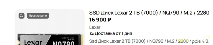 | Накопители | PCIE 4 NVME SSD Lexar NQ7A1 2 ТБ |