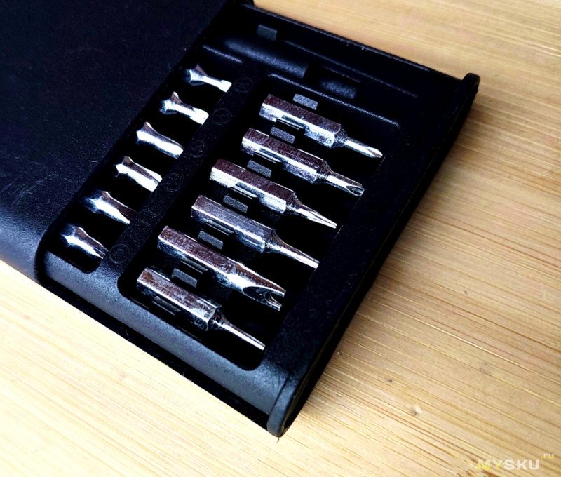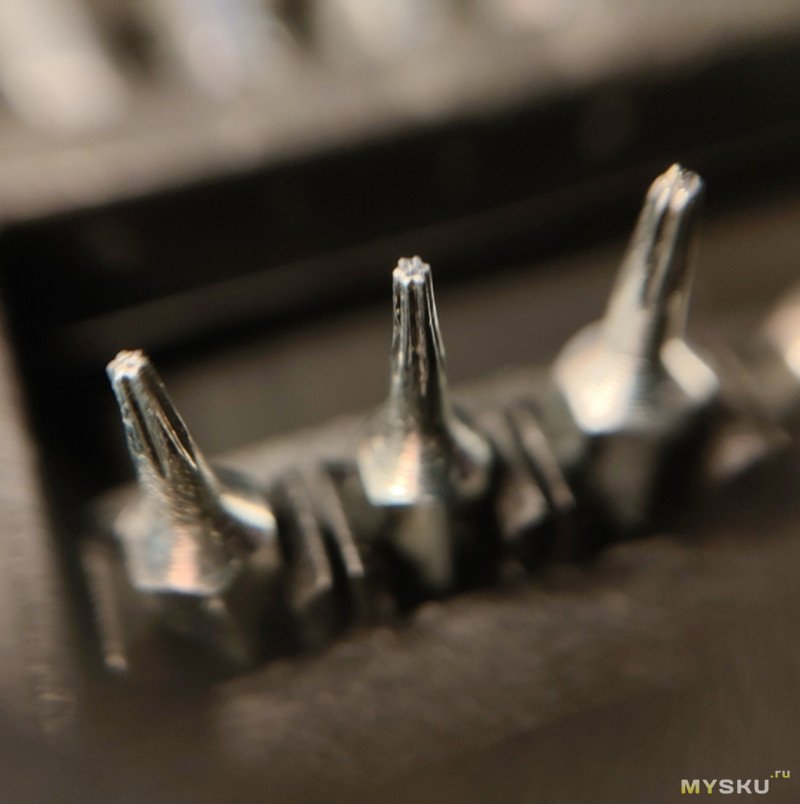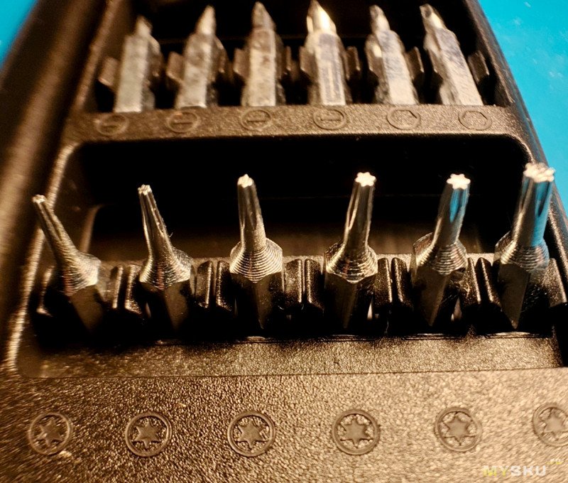 Важно — после нескольких доставаний бит из своих защёлок, те перестают их держать (как выше писал — они из дурного пластика, который не гнётся и видимо деформируется).