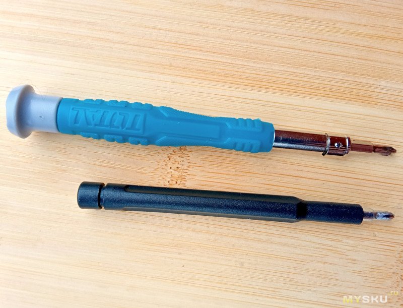 В Total рукоятка маленькая и не очень ухватистая, зачем может понадобиться еще меньше? Я бы наоборот в сторону более крупной смотрел, а то иногда сложно что-то выкручивать. Надо будет переходник с бит 6.35 мм на биты 4 мм поискать, чтобы можно было использовать ручку побольше.