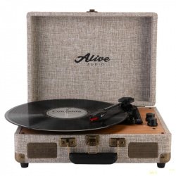 Чемоданчик Alive Audio Glam в новой тканевой отделке выглядит винтажно (сочетание ткани с крупной текстурой и «бронзовых» элементов), создает при работе музыкальный антураж. Это гаждет который можно унести одной рукой, открыть в любом месте и пустить пластинку для фона, пока вокруг трещит костёр на пикнике или мерцает экран ноутбука на работе. Питание от розетки или пауэрбанка. Такие решения подходят в качестве тематического подарка, для проведения вечеринок и знакомства с коллекцией бабушкиных пластинок (три скорости помогут справиться с любой). Основной упор сделан на внешний вид, звучание на уровне компактных портативных колонок (без особых заморочек), есть дополнительные аудио входы. Из минусов — большая сила прижима иглы, для новых пластинок это может быть избыточно.А у бренда есть и более серьезные модели для интеграции в качественную домашнюю аудиосистему, например, Alive Audio TWISTER.