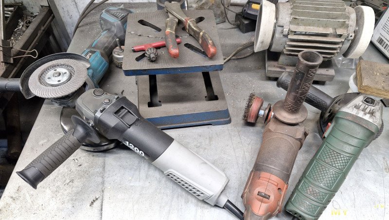 Перемещаемся в мастерскую для тестов. Болгарка тут повседневный инструмент: