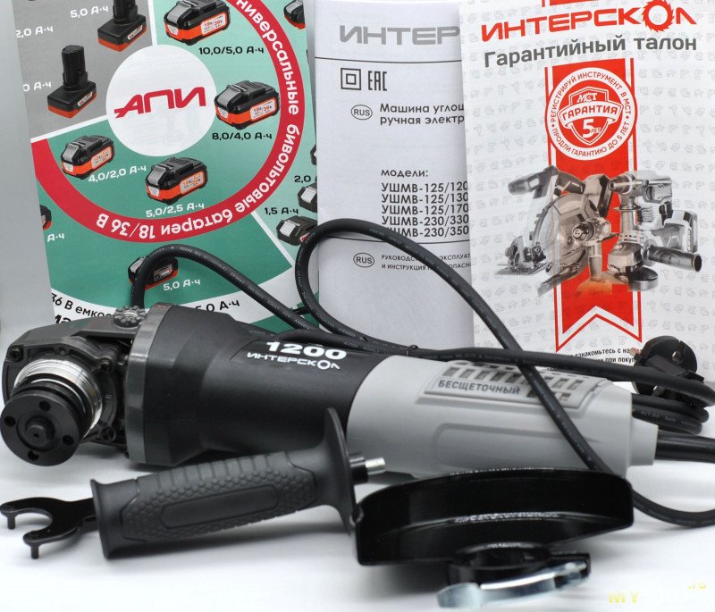 УШМ или по-народному болгаркой наверняка пользовался каждый домашний мастер. Но все большее распространение получают модели с бесколлекторным двигателем (без щеток). Это решение компактнее, с более высоким КПД, меньше изнашивается и не искрит. Но в инструменте его нужно грамотно реализовать. Сегодня посмотрим как это получилось у отечественной компании Интерскол, на примере сетевой УШМ с мощностью 1,2 кВт, регулировкой оборотов, под 125-й (самый ходовой для бытовых работ) диск. Под катом обзор модели УШМВ-125/1200Э с разборкой и применением в мастерской.