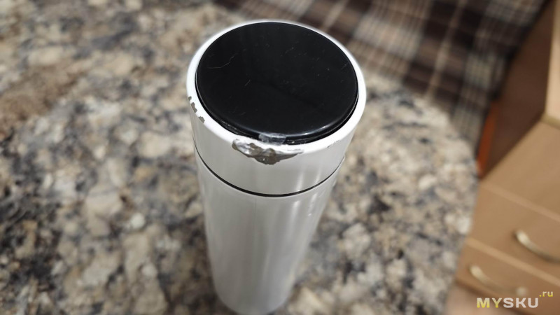 Однако сложность её замены заключается в том, что крышка термоса, внутри которой и стоит батарейка, имеет неразборную конструкцию. Никак она не раскручивается и не разбирается, даже если приложить серьёзные физические усилия.