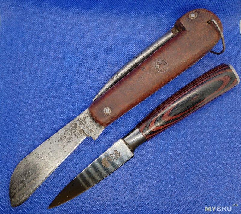 Заводская заточка ножа была конечно выполнена, но без фанатизма. Бумагу нож резал, но режущая кромка была сделана посредственно.