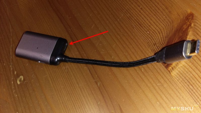 На обратной стороне устройства находится USB Type-C кабель с поддержкой DP Alt Mode, а также порт USB Type-C c поддержкой сквозной зарядки и светодиод с индикацией работы.