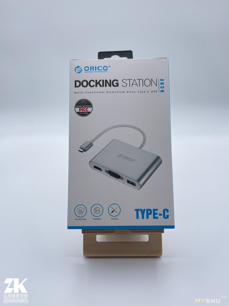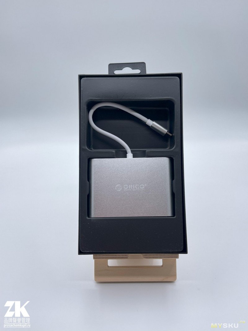 Комплект поставки у ORICO RCHV предельно минималистичный (я бы даже сказал бедный) и без лишних изысков. В коробке пользователь найдет сам док-адаптер, гарантийный талон и многоязычную инструкцию по эксплуатации. На этом список содержимого заканчивается. Никаких дополнительных аксессуаров в комплект не положили: кабелей HDMI, VGA или USB здесь нет, и рассчитывать на них не стоит. С одной стороны, подход вполне ожидаемый для подобного класса устройств, с другой хотелось бы хотя бы получить чехольчик (например, как у UGREEN). Поэтому при покупке стоит заранее убедиться, что все необходимые кабели у вас уже есть, иначе к стоимости адаптера придется добавить ещё и покупку подходящих проводов.Устройство крупным планом: