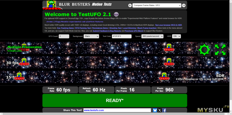 Тестирование с помощью TestUFO версии 2.1 подтвердило стабильную работу обоих дисплеев на частоте 60 Гц с минимальной задержкой в пределах нескольких миллисекунд, что можно считать вполне достойным результатом. Порт USB Type-C корректно работает с флеш-накопителями, внешними жесткими дисками и периферией, обеспечивая заявленную скорость передачи данных до 5 Гбит/с. В то же время при одновременном подключении двух мониторов питания от ноутбука хватает лишь для флешек и 2,5-дюймовых жестких дисков. Более прожорливые портативные накопители уже потребуют использования сквозного питания. К счастью, USB Type-C с поддержкой Power Delivery позволяет параллельно заряжать ноутбук даже при работе с двумя внешними экранами, что особенно удобно в дороге или командировках.