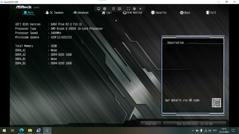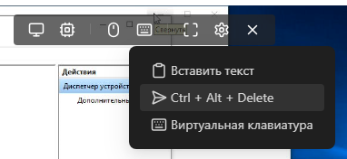 Окно программы выглядит как какая-нибудь программа удалённого управления. Клавомышь у меня завелись не сразу, выдернул-воткнул на клиенте — заработало. Лаг во время работы есть, но не критичный для целей установки-настройки.