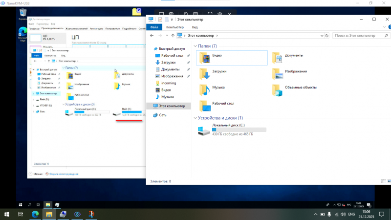 Заявлена работа через браузер, но тут не всё так просто.Если у вас есть интернет, то вы можете перейти на usbkvm.sipeed.com, там выбрать устройство видеозахвата и COM-порт — и начать управлять. Нужен браузер с поддержкой webSerial, рекомендуют Chrome, но MS Edge сработал. Звук передаётся, но не всегда стабильно. Мобильный хром, пишут, не работает. Точнее, картинку можно посмотреть, но клавиатуры+мыши не будет.