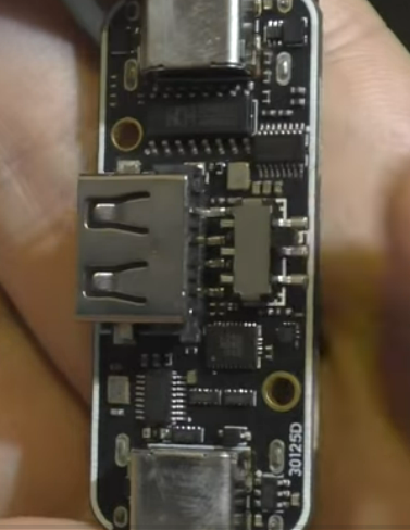 Фотографировать устройство со всех сторон смысла нет. Слева входы typeC и HDMI, справа — выходы. С одного боку USB-порт, с другого — переключатель, который этот порт переключает между хостом и целью.