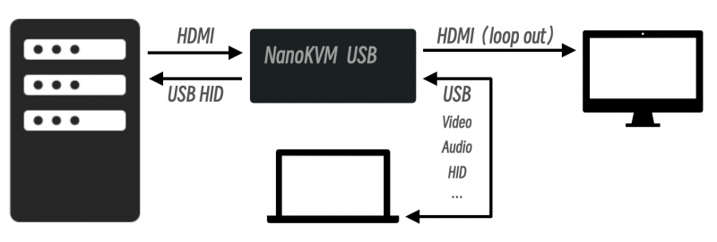Вообще, конечно, просится сюда кубик с usb/hdmi/dp и wifi на борту — подключил его куда хошь, потом с ноута к его wifi подключился и работай. И это называется Sipeed NanoKVM)