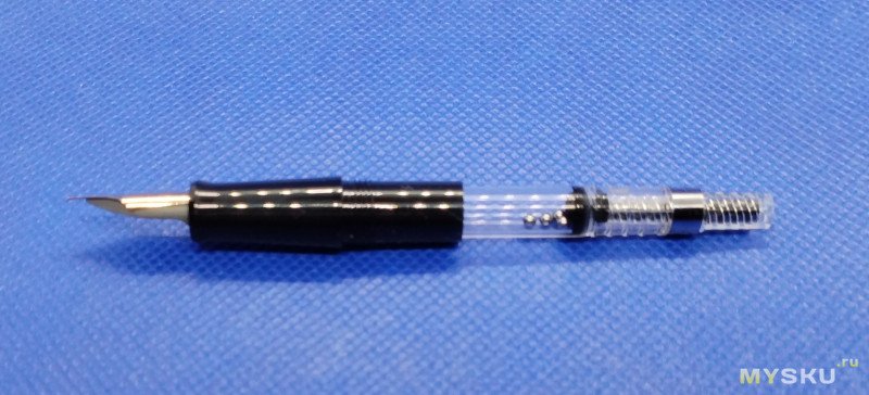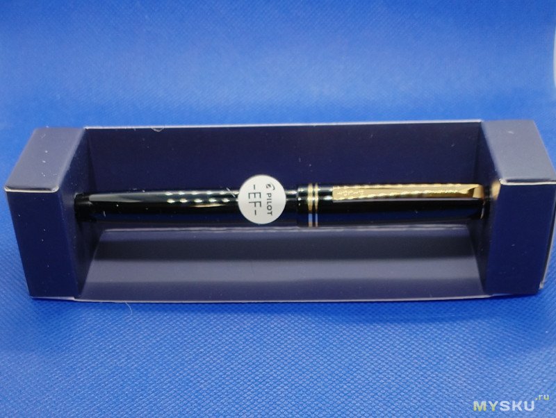 На ручке ярлычок Pilot -EF-, что указывает на исполнение пера и толщину линии. Именно такое перо я и хотел видеть на этой ручке.