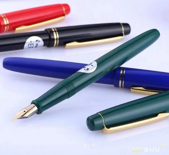 Тем более об этом говорят яркие варианты цвета пластика: черный / black; красный / red; зеленый / green; бирюза / teal.Полировка пластика просто в зеркало, и хотя он хорошо окрашен в массе, рано или поздно ручка будет покрываться потёртостями и царапинами. Это конечно в дальнейшем будет влиять на внешний вид, как и стирание золотистых колечек.