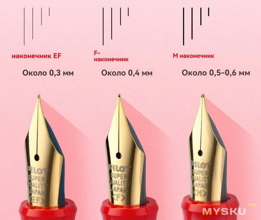 3. все пилотовские перья EF, которые я держал (золотые тоже) были довольно царапучие, если подойдёт линия F — лучше брать именно ее, намного приятнее пишет.