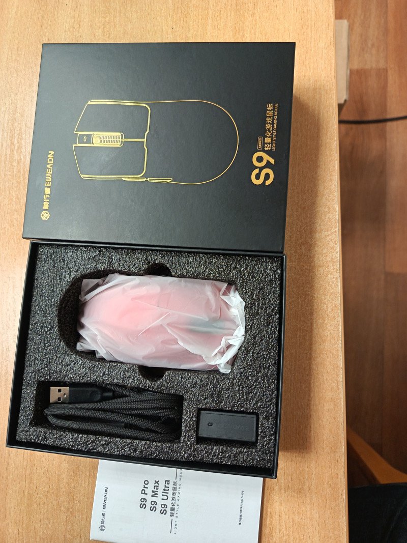 Надоель перепаивать на старой мыше от Steelseries микрики, пришло время обновиться. В ситилинке всё печально, днс чуть получше, но в остальном дорогое старьё. Рассматривал несколько вариантов, в том числе с быстросменными переключателями. Один из вариантов был Incott G23, но тут попалась на глаза EWEADN S9. По характеристикам сенсора не хуже, размер мыши не маленький, и передатчик аж на 8к. Отызвы тоже были неплохие.