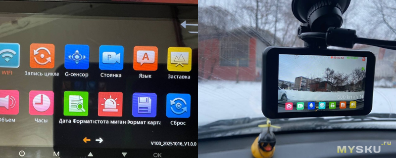 Во время работы регистратора от зажигания, можно выбрать как отображать каналы — вывести сразу два канала на экран или выбрать передний или задний канал. Так же можно отключить функцию голосового управления, так как она только на английском. За время использования регистратора ложных срабатываний этой функции не было, так что можно и не отключать.