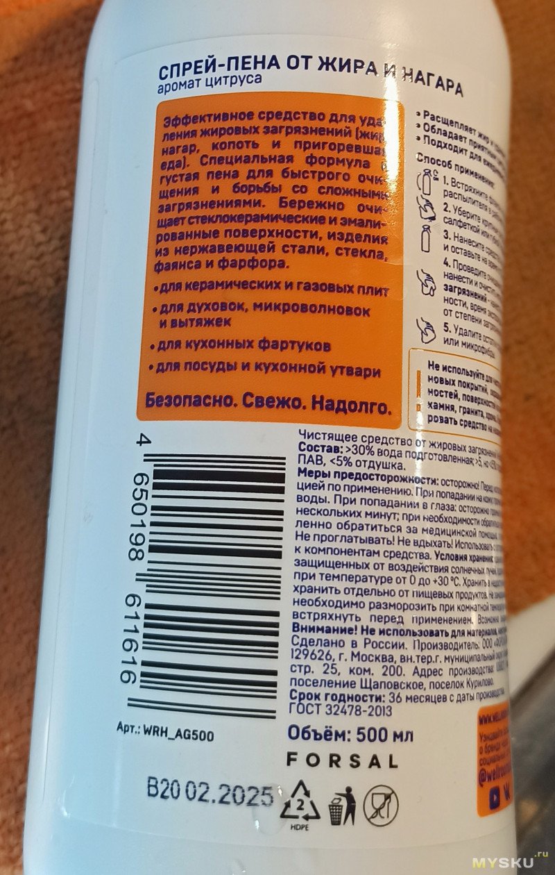 Эффект средства: удаление жира; универсальное чистящее средство; удаление запахов