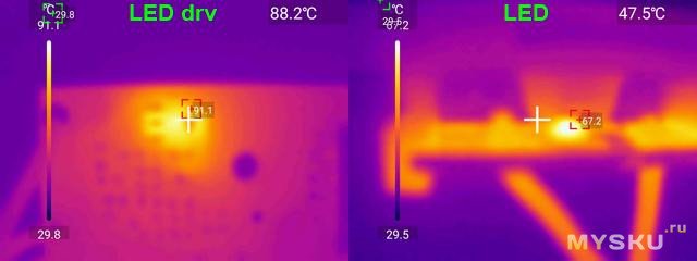 Нагрев светодиода и его драйвера под 70 и 90C: