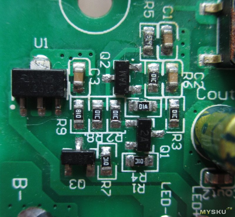 Крупнее, понижающий преобразователь HC2022A (5В 2А), драйвер светодиода L7135 и несколько транзисторов