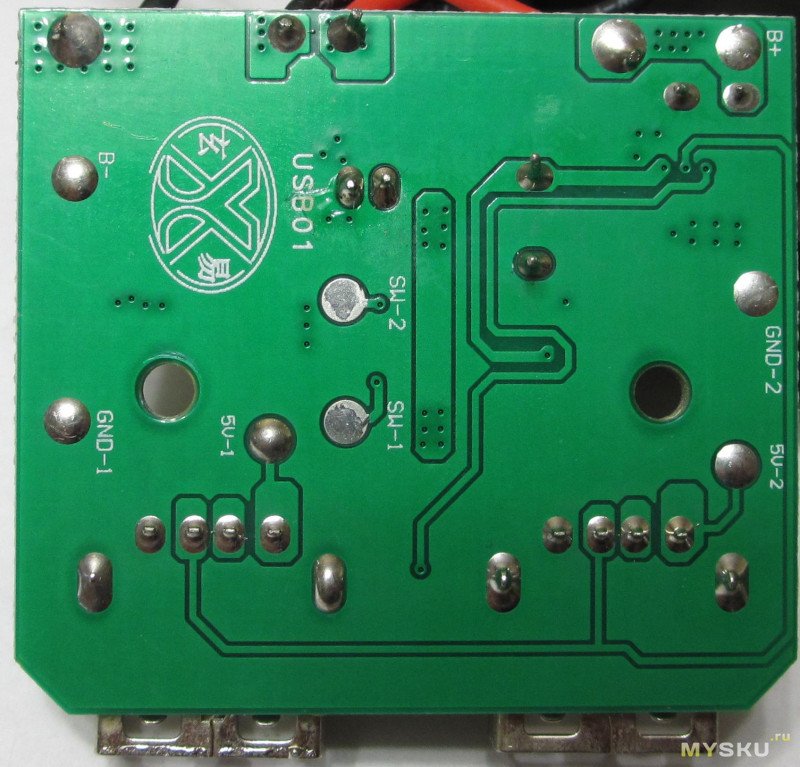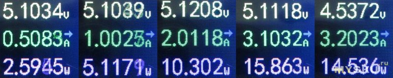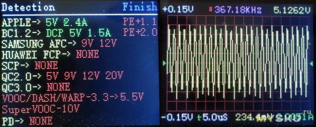 Выходы usb запараллелены, никакими высоковольтными протоколами не отягощены, d+/d- замкнуты. Пульсации при максимальном заявленном токе достаточно высоки: