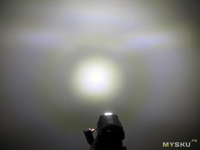 Фонарик включается от кнопки, выключается от повторного нажатия. Бимшот: