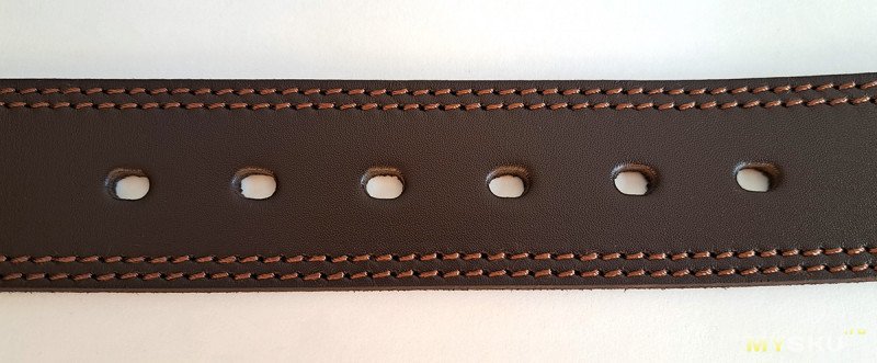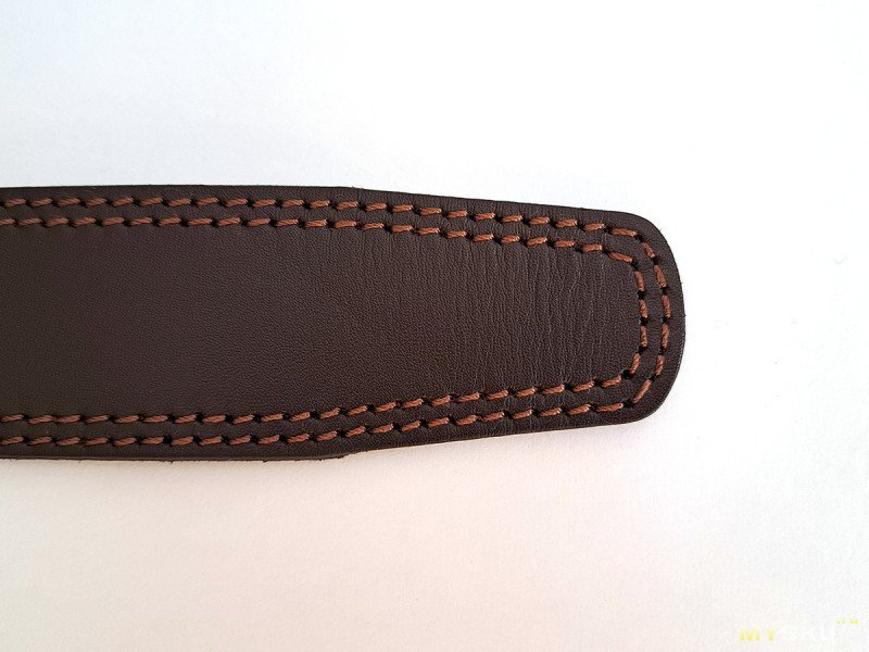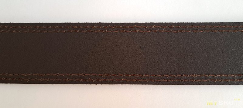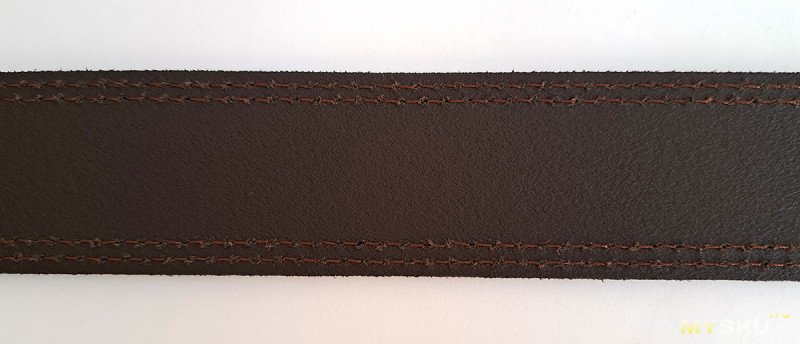 Кожа на полотне с равномерной структурой. Я раньше думал, что прострочку делают только для красоты. Но оказывается, она нужна, чтобы ремень не растягивался.
