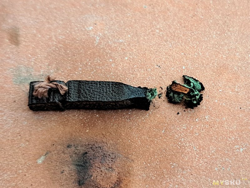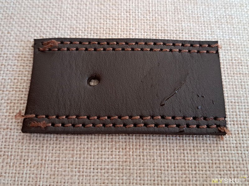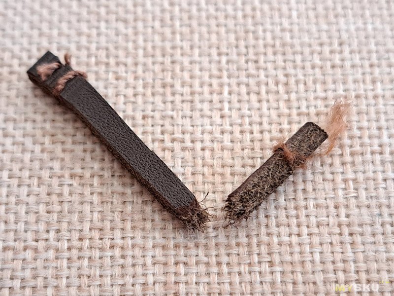А вот прочность кожи оказалась не на высоте. Обычно, я такую полоску не могу порвать, взявшись пассатижами, а тут получилось. Как понимаю плотность кожи ниже, чем обычно
