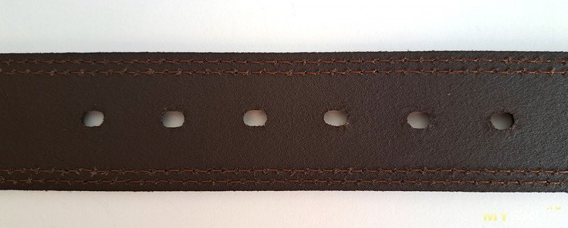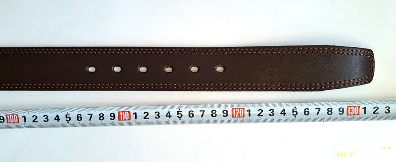 Ширина полотна 39 мм, вместо заявленных 40. Где-то я видел, что производители ремней это объясняют необходимостью подгонки под существующие пряжки. (в смысле закупили партию, а для них только полотна шириной 39 мм подходят).