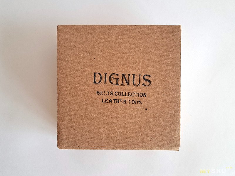 Ремень упакован в коробку из обычного картона в крафтовом стиле.