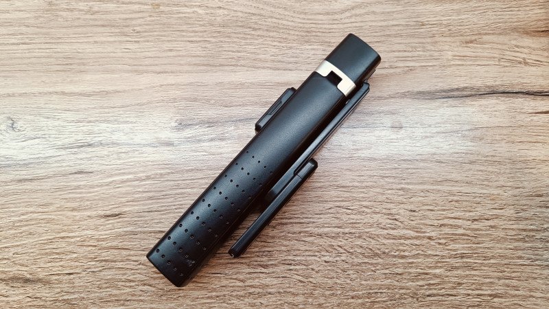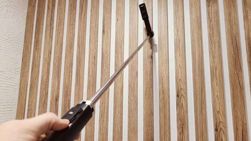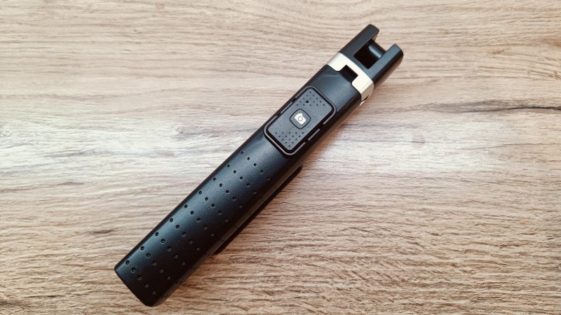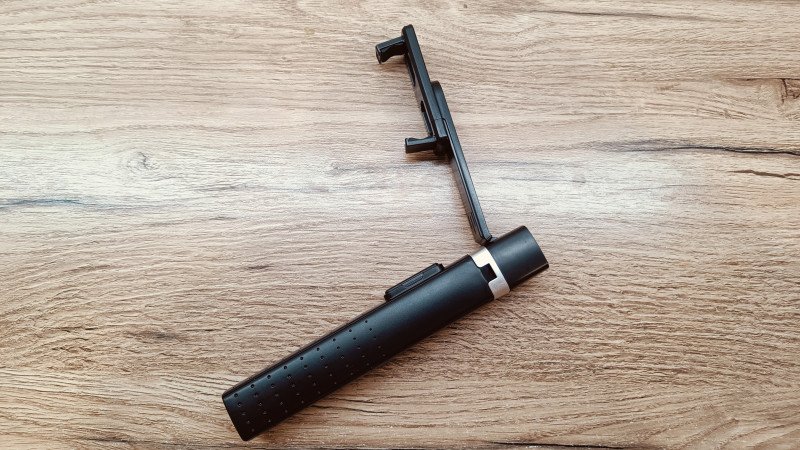 Сама селфи-палка довольно компактная. Длина не более 200 мм, поместится в сумочку или рюкзак. Из выступающих частей можно увидеть съемный пульт и прицепной механизм для смартфона.
