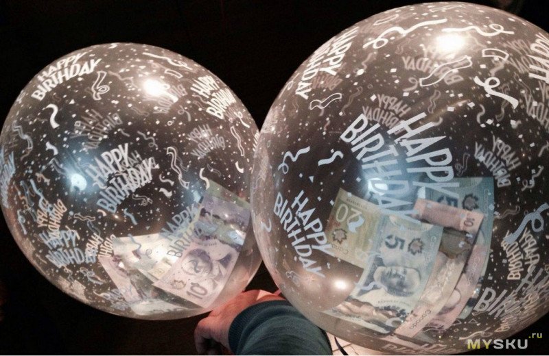 Воздушные шарики с гелием наполненные деньгами и конфети, или конфетную коробку с деньгами