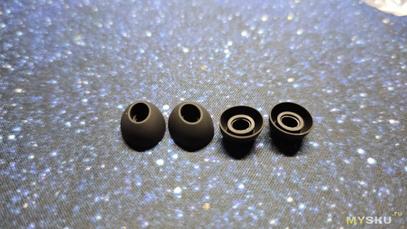 Также в комплекте идут еще 2 размера амбушюр (побольше и поменьше установленных по умолчанию) для обеспечения комфортной посадки наушников в ушной раковине.