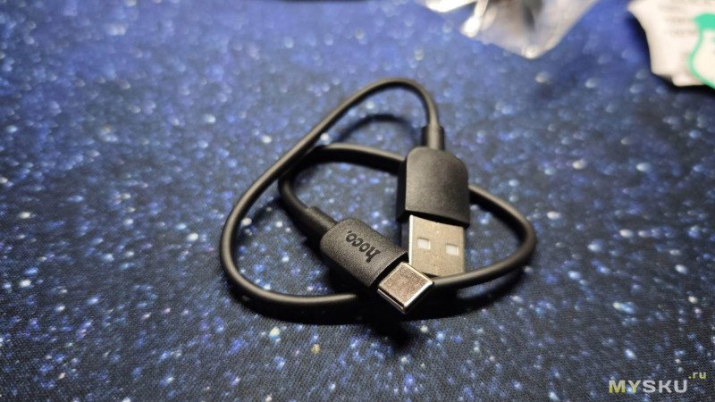 Зарядный кабель короткий — 30 см, с разъёмом USB Type-C и фирменным логотипом на пластиковом штекере.