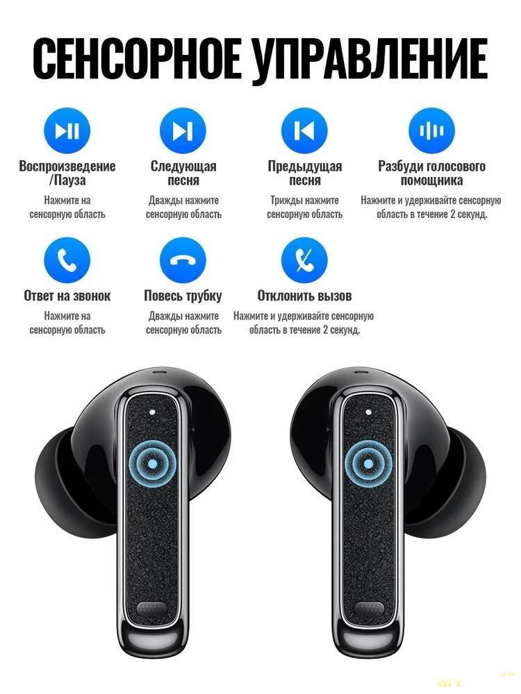 Алгоритм управления с помощью сенсоров на наушниках приведён на картинке ниже. Запомнить и повторить его весьма не сложно.